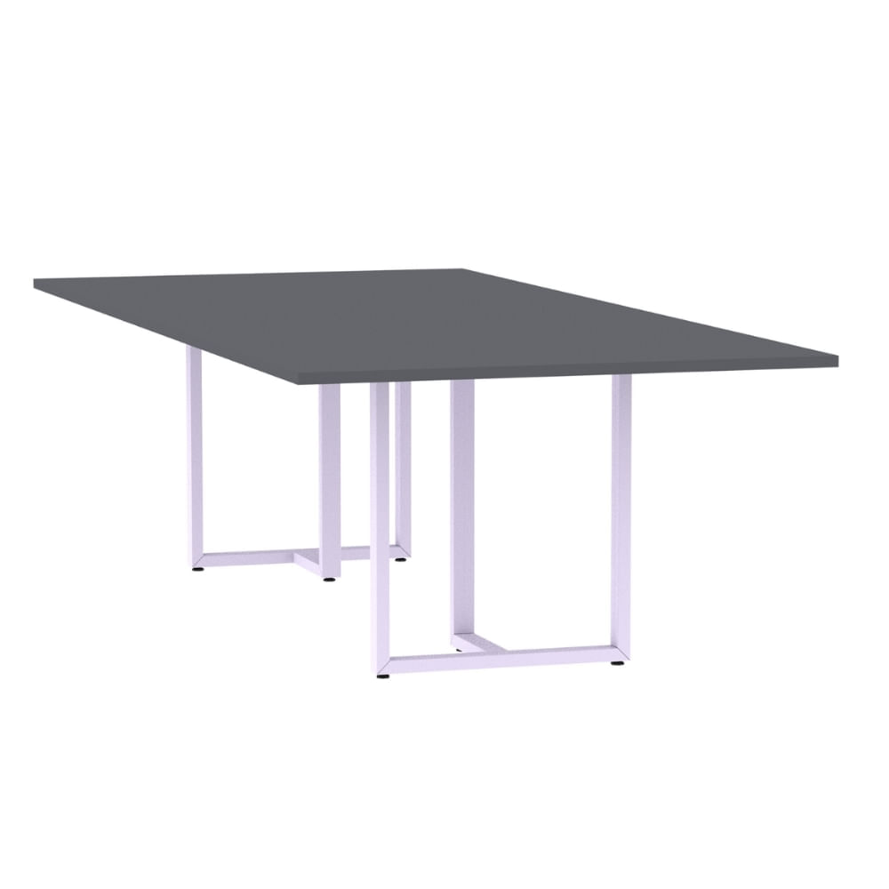 Mesa de Reunião com Caixa de Tomada 260 x 120 cm Pé Tubular PE25 em MDP Cor Cinza Base Preta