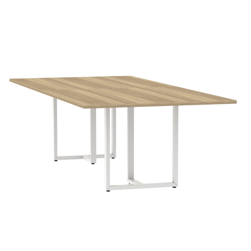 Mesa de Reunião Retangular 260 x 120 cm Pé Painel PE25 em MDP Cor Noce Naturalle Base Branca