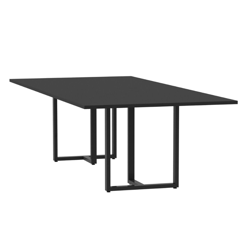 Mesa de Reunião Retangular 260 x 120 cm Pé Painel PE25 em MDP Cor Preta Base Preta