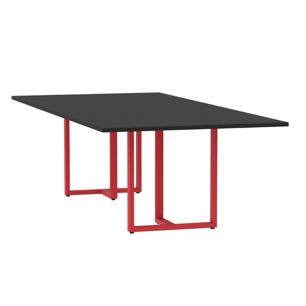 Mesa de Reunião Retangular 260 x 120 cm Pé Tubular PE25 em MDP Preta Base Preta