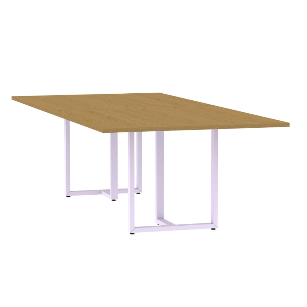 Mesa de Reunião com Caixa de Tomada 260 x 120 cm Pé Tubular PE25 MDP Noce Naturalle Branco