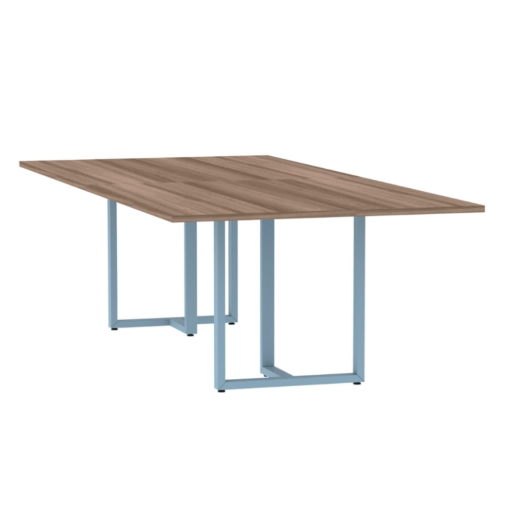 Mesa de Reunião Retangular 260 x 120 cm Pé Tubular PE25 em MDP Cor Nogueira CasaBlanca Base Branca