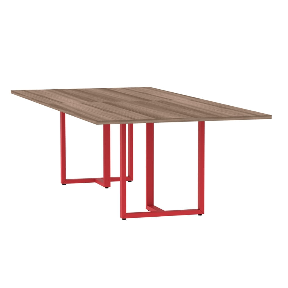 Mesa de Reunião Retangular 260 x 120 cm Pé Tubular PE25 em MDP Cor Walnut Base Preto