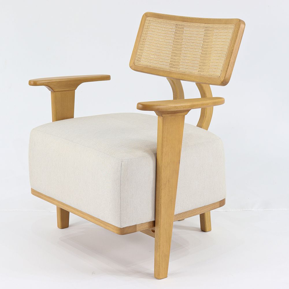 Poltrona Conde Nacional Móveis 64cm (Larg) Madeira Tauari Amêndoa Encosto Trama Tecido Papel