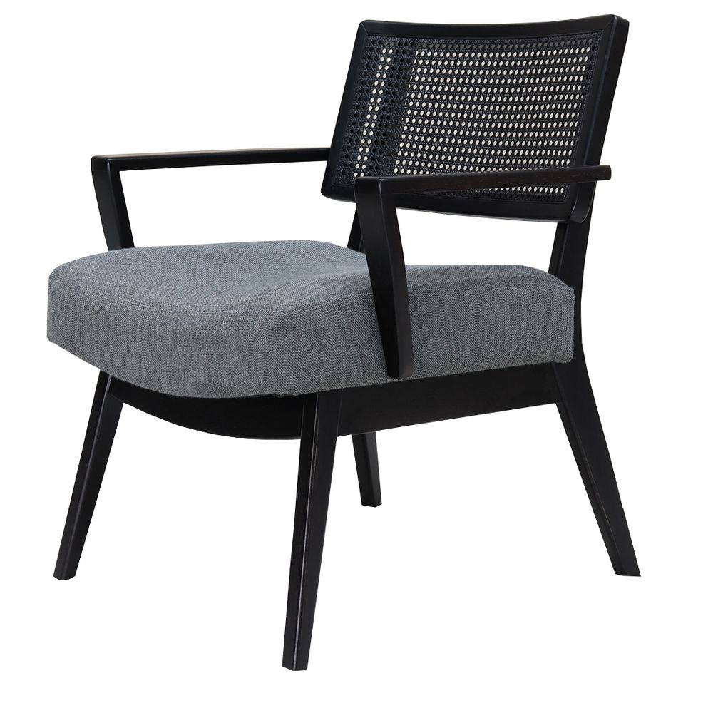 Poltrona com braço Acaé Ozki Linho Cinza Madeira Cedro Corda Náutica Chata Poliéster Rami