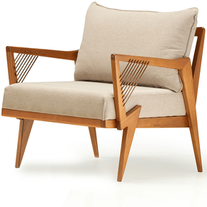Poltrona MH-3784 Herval Madeira Eucalipto Estofado Bege Base Laca Fosca Chocolate Leve