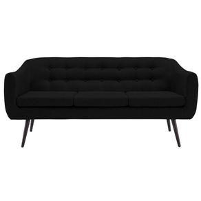 Sofá 3 Lugares Retrô Mimo Botonê Daf Móveis 175cm Madeira Eucalipto Veludo Preto Base Madeira Tauari