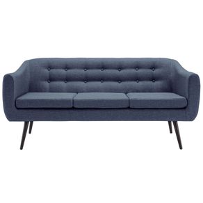 Sofá 3 Lugares Retrô Mimo Botonê Daf Móveis 175 cm Madeira Eucalipto Linho Azul Base Madeira Tauari