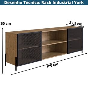 Rack Industrial York Artesano 180 cm (largura) em MDP Vermont Duas Portas Aço Preto