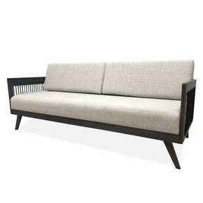 Sofá 4 Lugares Saibi Ozki 240 cm Poliéster Bege Madeira Eucalipto Amêndoa Corda Náutica Plana Poliéster Preta