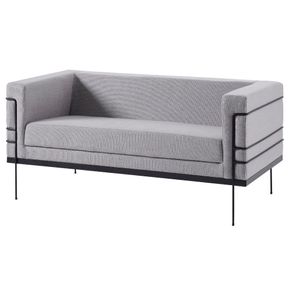 Sofá 2 Lugares Le Corbusier Daf Móveis 136 cm em Madeira Eucalipto Espuma D28 Linho Cinza Base Aço