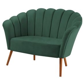 Sofá 2 Lugares Petala Daf Móveis 135 cm em Madeira Eucalipto Veludo Verde Base Madeira Tauari