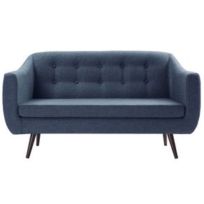Sofá 2 Lugares Retrô Mimo Botonê Daf Móveis 135 cm Madeira Eucalipto Linho Azul Base Madeira Tauari