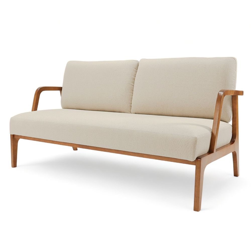 Sofá Coss Ozki 120 cm Madeira Eucalipto Cedro Tecido Bege Corda Redonda Canela
