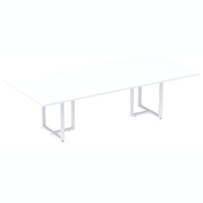 Mesa de Reunião Retangular 200 x 90 cm Pé Tub PE25 em MDP Cor Branca Base Branca